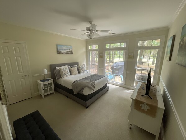 Walking into “Low Country Chillin” is classic Daufuskie. Enjoy the open floor plan including a vast kitchen, living/dining area which opens up to a large screened in porch. Next to the porch you will find a grilling deck. This home has 3 bedrooms and 2 ½ bathrooms. The master suite has a great view of the wooded area around the home and features a king size bed. The master bath has a walk in shower, soaking tub & double vanity. There is also a desk/work station with double monitors. On the other side of the home are 2 great size bedrooms, each with a queen size bed, that share a Jack and Jill bathroom. The living room and all bedrooms have flat screen/smart TV’s. There is a full size washer and dryer and highspeed fiber optic internet.