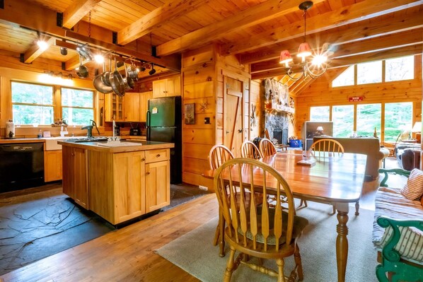 Wunderschön eingerichtetes und ausgestattetes, zweistöckiges appalachisches Blockhaus auf einem 3 Hektar großen bewaldeten Grundstück mit Teich. Stein- und Holzakzente, Holzböden, Domdecken und Whirlpool im Freien auf großzügiger Terrasse. Drei Decks. Drei Schlafzimmer mit einem Dachboden (3 Queensize-Betten, Etagenbetten und 2 Einzelbetten) und drei Vollbädern. Kinderspielzimmer mit TV, Gesellschaftsspielen und Büchern. Minuten vom Canaan Valley State Park & Ski Resort und dem Timberline Ski Resort entfernt. Seeprivilegien.