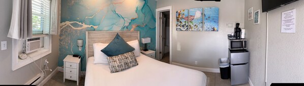 Our most affordable rooms, the Petite Queen Room doesn't skimp on décor or comfort. Decorated with a modern style, it's perfect for the a solo traveler or a couple on a weekend adventure. These rooms are filled with natural light, curated beach photography and just enough comfort to welcome you with when you return from exploring Daytona.