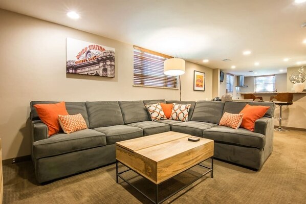 Eine sehr große, neue, hochwertige, moderne Wohnung auf Gartenebene im Herzen der Lower Highlands in der Innenstadt von Denver. Diese helle und luftige Wohnung ist 1 Schlafzimmer - 1 Badezimmer. Es ist perfekt für ein Paar, zwei Singles, Geschäftsreisende oder Paare und Kinder. Das Bad hat eine Dusche mit Doppelstrahlköpfen und Sitzbank. Das Schlafzimmer verfügt über ein luxuriöses Kingsize-Bett, das mit luxuriösen Baumwollbettwäsche sowie festen und federgroßen Kissen ausgestattet ist. Das Wohnzimmer verfügt über ein massives, tiefes L-förmiges Schlafsofa, einen 50-Zoll-Flachbildfernseher, kostenloses WIFI und Premium-Kabelfernsehen. Zwei Personen können sich buchstäblich ausstrecken und auf diesem super bequemen Sofa einschlafen. Es ist auch perfekt für den ultimativen Filmabend nach einem langen Tag voller Spaß in Denver. Oder beides!