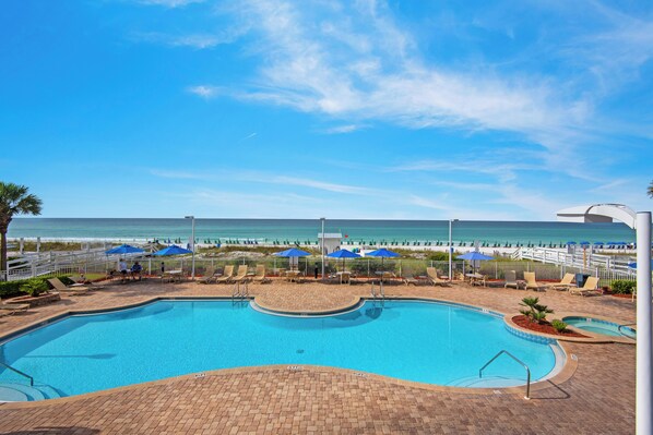 * Resort-style amenities: Take a dip in the outdoor pool heated (seasonally), stay active in the on-site fitness center, and enjoy direct beach access just steps away.