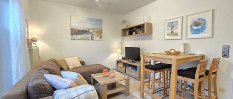 Kleine Muschelbude Fewo, mit Balkon, WLAN, Haustiere gestattet.Wallbox