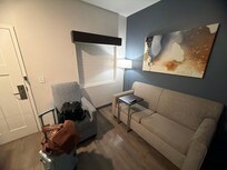Ja, diese Unterkunft heißt Hunde (max. 2 insgesamt) mit einem Maximalgewicht von bis zu 36 kg pro Haustier willkommen. Es werden eine Kaution von 250.00 USD pro Aufenthalt und eine Gebühr von 25.00 USD pro Haustier, pro Nacht erhoben. Assistenztiere sind von Gebühren ausgenommen.