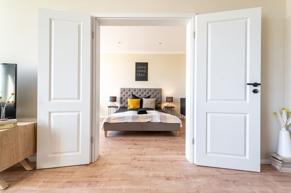 Bringt eure Fahrräder mit! Zur Wohnung gehört ein abschließbarer Keller.