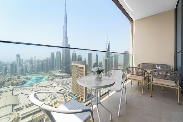 Marvel at the nearby Burj Khalifa by gazing through the glass doors from the comfy sofa