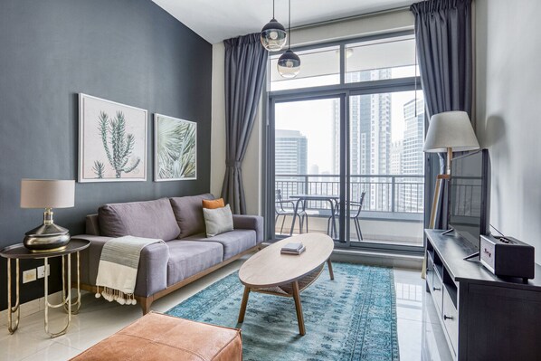 Discover the best of Dubai, with this one bedroom apartment in Downtown Dubai with balcony views over the city. It’ll be easy to simply show up and start living in this furnished apartment with its fully equipped kitchen, living room, and our dedicated, on-the-ground support. (ID #DXB847)