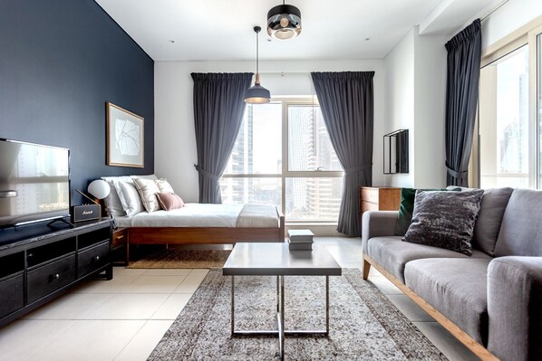 Gorgeous furniture, fully equipped kitchen, smart TV, and a premium wireless speaker are just a few of the amenities you’ll find inside this studio apartment. Ideally located in Dubai, you’ll find a lot to love outside as well. When you’re ready to relax, you’ll be happy to discover every Blueground bedroom comes with superior quality mattresses, fully stocked linens, and cozy towels. We handle everything so you can simply show up and start living. This apartment also offers in-apartment laundry.