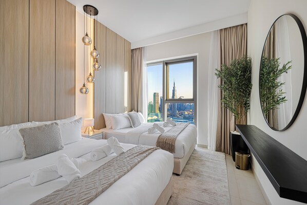 Chic 2-bed apartment with Full Burj View in vibrant Dubai - WiFi and AC incl.