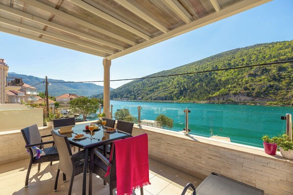 Das Apartment befindet sich im 1. Stock eines Einfamilienhauses und bietet ein Hauptschlafzimmer mit Bad, einen Balkon, 3 Queen-Schlafzimmer, 2 Badezimmer und eine offene Küche mit Essbereich. Das Wohnzimmer öffnet sich zu einem Balkon mit Meerblick Ansicht und Blick über die Ombla. Vor dem Haus befindet sich ein Pier mit direktem Zugang zum Meer und die Sonnenliegen sind ausschließlich für Gäste reserviert. Das Apartment verfügt außerdem über 2 private Parkplätze und einen Bootsanleger.