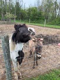 We’ve been coming to Holmes Co. for nearly 20 years. We usually stay in hotels, this was only our second rental experience. It was wonderful having seclusion, whilst still being just 10 minutes from the center of it all. My kids are 14, 13, and 10. I wish we’d stayed here when they were younger and could enjoy all the fun backyard things! We did still enjoy an evening fire, and I loved sitting out listening to the birds. The donkey and ponies were our favorite thing. We loved feeding them carrots and just watching them eat their hay.