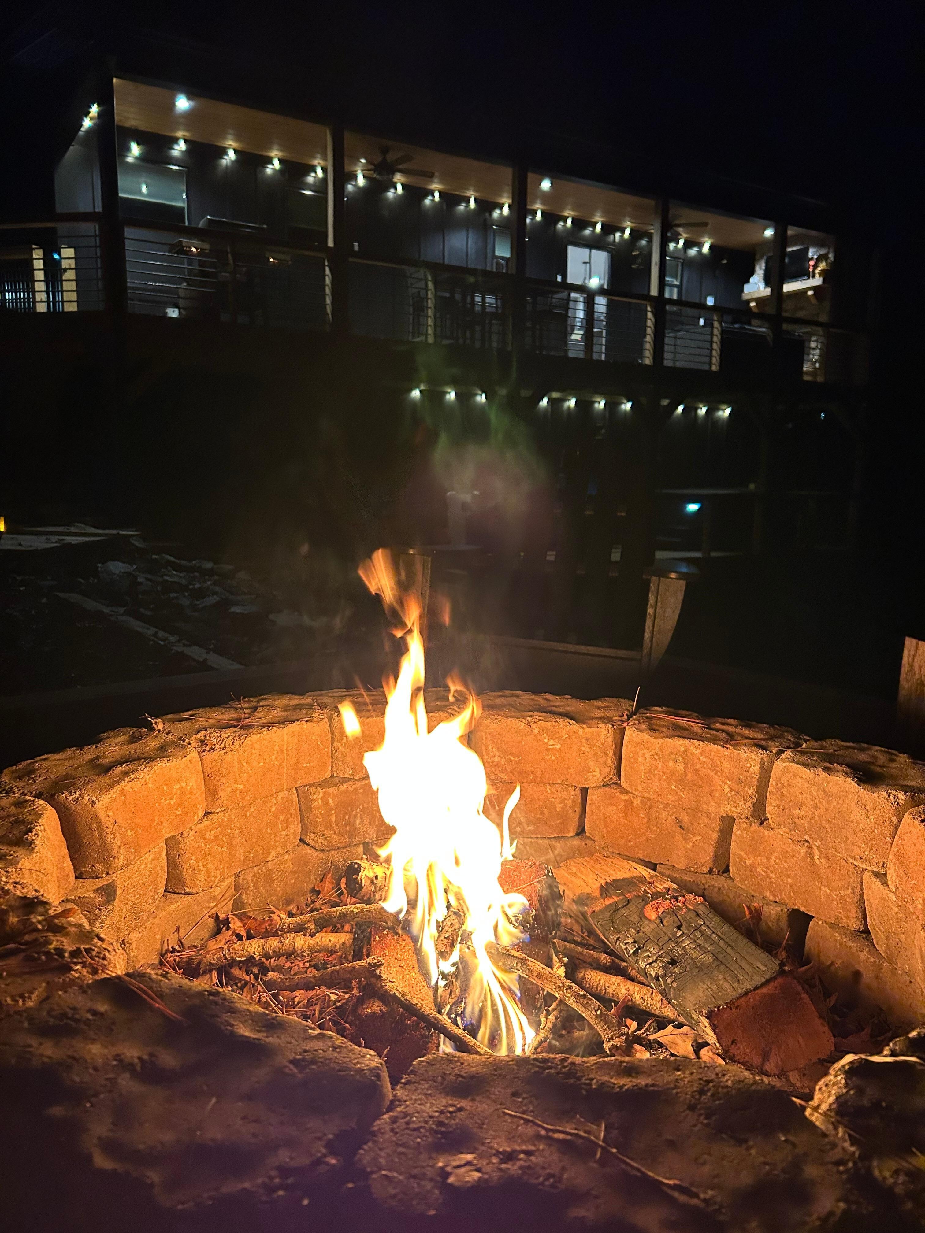 Let your dog play in the fenced backyard while you play cornhole or relax at the cozy firepit.