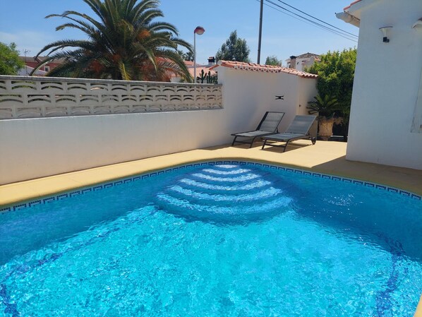 Großzügige Ferienvilla für 6 Personen, gemütliche und gut ausgestattete Villa auf privatem, komplett eingezäunten Grundstück mit quadratischem Pool (5 x 5 m). Nur 300 m vom Strand entfernt.