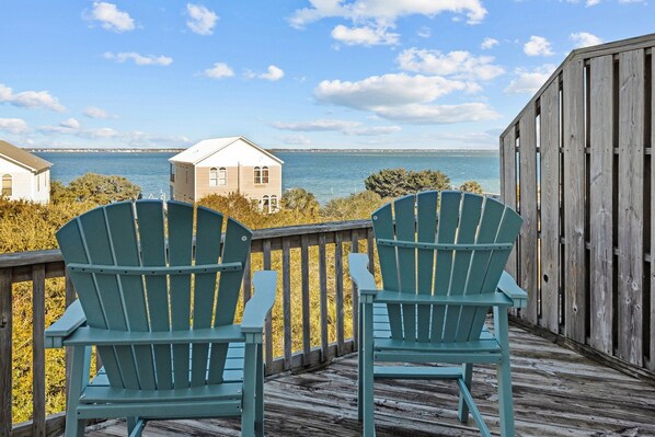 Gorgeous Bogue Sound and Ocean views are yours in this spacious 4 Bedroom, 3.5 bathroom beautifully decorated and appointed unit. Perfectly located with Public Access to Bogue Sound and Public Access to the ocean just steps away. The decks are amazing! Lounge and relax inside with beautiful views or retire to the wrap around decks and soak up the sun and the ocean breezes. Sunrises and Sunsets are truly spectacular!