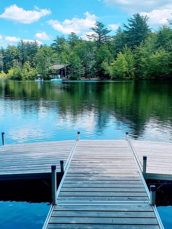 This lakeside house is located on Chestnut Pond, a tranquil, relaxed, family-friendly pond perfect for swimming, kayaking, canoeing, paddleboarding, and fishing. The house sleeps four (4), featuring sought-after amenities, including a deck, a grill, and kayaks.