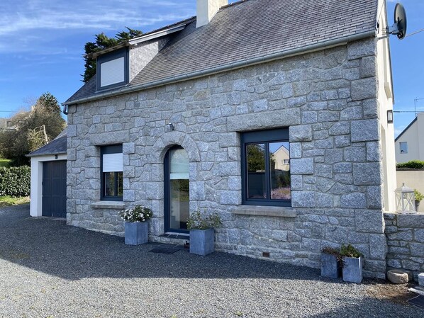 The agency offers this charming stone house with three bedrooms, just steps from the beautiful beaches of Le Guen and Lourtuais (less than 2 km away).