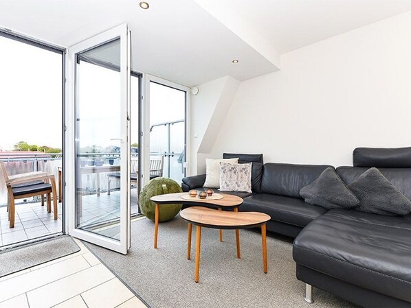 Größe: ca. 63 Quadratmeter fantastischer Hafen- und Meerblick vom Sofa und von der Balkonterrasse Wohnraum mit integrierter hochwertiger Küche Induktionskochfeld und hochwertige Küchengeräte Schlafzimmer zweites separates Schlafzimmer/Kinderzimmer Beide Schlafzimmer mit Boxspringbetten Badezimmer mit Dusche, Waschtisch und WC Obergeschoss Balkon (Richtung Nordsee) Parkplatz in Tiefgarage Zugang zur Wohnung ohne Treppensteigen Koffer-/Abstellraum optimal für 1 bis 4 Personen