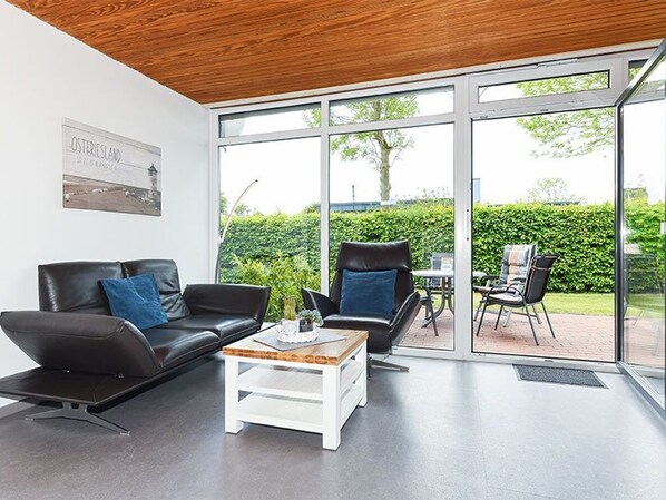 Das Ferienhaus ist ebenerdig im Stil eines Flachdach-Bungalows gebaut. Es ist freundlich-gemütlich gestaltet und eingerichtet sowie sehr gut ausgestattet mit allem, was Sie für Ihren Nordsee-Urlaub in Bensersiel benötigen werden. Es verfügt über eine Wohnfläche von ungefähr 65 Quadratmetern zuzüglich einer schönen, geschützten Terrasse am Wohnzimmer. Einen Garten gibt es ebenfalls an der Terrassenseite.