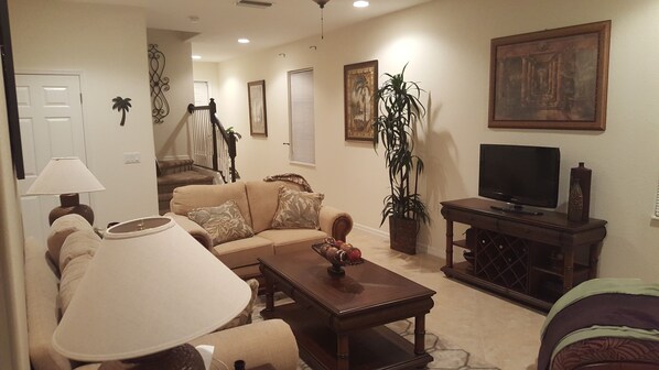 Our Bella Terra Beauty is a 2 story townhouse with 3 bedrooms, 2 and half baths, fully furnished, Old Florida Style, and located in Estero, Florida. Bella Terra subdivision has a resort style pool, tennis courts, gym, walking paths and so much more! Centrally located close to airport, shopping, beaches, Naples and Fort Myers.