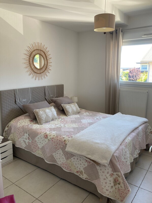 Das 65 m² große Appartement in Évian-les-Bains bietet Platz für bis zu 4 Personen mit 2 Schlafzimmern und 1 Bad. Ein Schlafzimmer ist mit einem Doppelbett ausgestattet, das andere mit einem Ausziehbett für 1 Erwachsenen oder 2 Kinder. Die voll ausgestattete Küche ist offen zum hellen Wohnbereich. Sie profitieren von Highspeed-WLAN für Videotelefonie, TV, Waschmaschine, Selbst-Check-in, Babybett und Hochstuhl.