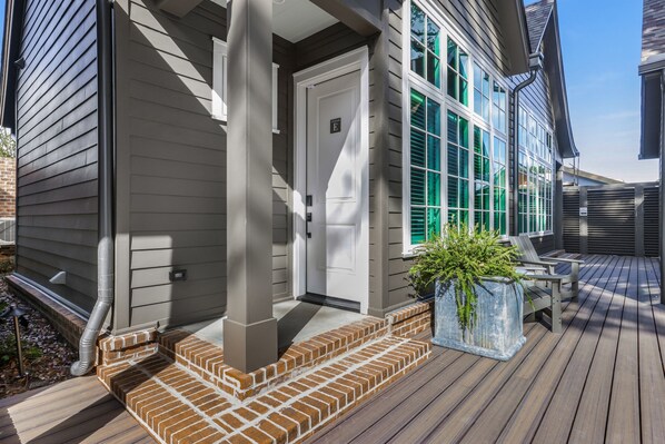 Arriving to the Fairhope Stay property, you'll enjoy the street front parking, a lit pathway to the front door for our late-night arrivals.