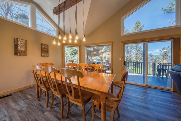 With three private bedrooms, plus a loft and a den, the home comfortably sleeps up to 15 guests. The layout is ideal for privacy and relaxation, offering a mix of shared and quiet spaces across three levels.