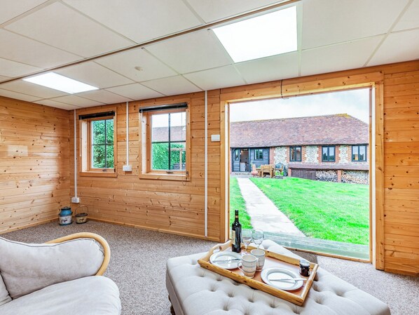 Shower Room: Double Shower, Heated Towel Rail, Toilet. Underfloor heating, electricity, bed linen, towels and Wi-Fi included. Initial logs for wood burner included. Travel cot. Welcome pack. Enclosed rear lawned garden with patio, garden furniture, summerhouse and BBQ. Private parking for 3 cars. No smoking.. This beautiful, semi-detached barn conversion, with original beams, has two large double bedrooms. With underfloor heating throughout, it has been furnished to a very high standard in keeping with its surroundings.
