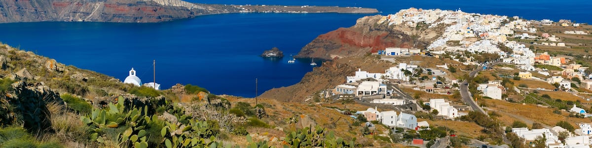 - Hotels nahe Aussichtspunkt mit Blick auf die Kirche von Oia
