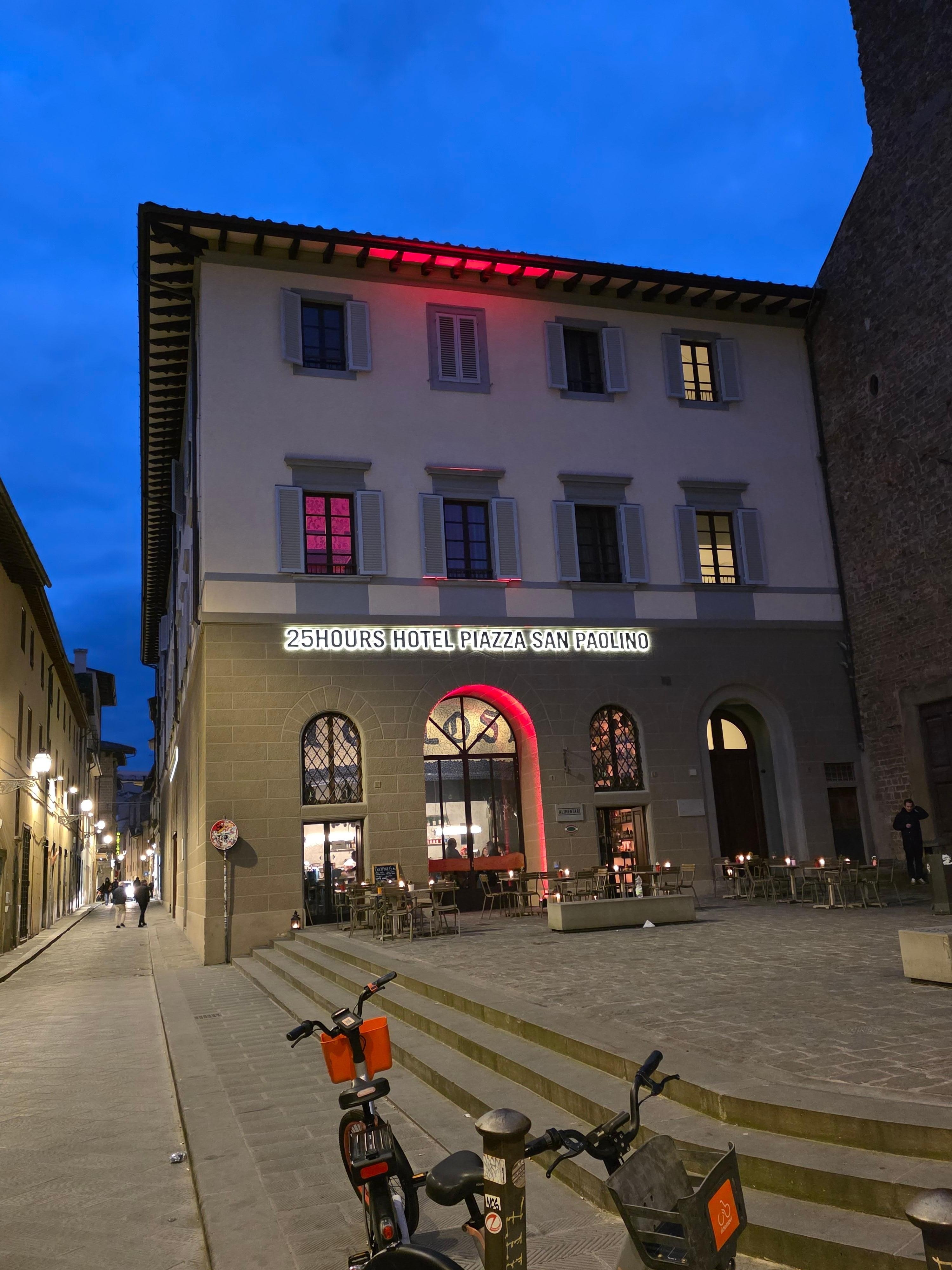 Gültig ab 18. Apr. 2026: Die Preise für 1 Übernachtung für 2 Erwachsene im 25hours Hotel Florence Piazza San Paolino am 19. Apr. 2026 beginnen bei 262 € (inklusive Steuern und Gebühren). Dieser Preis basiert auf dem niedrigsten Preis pro Nacht innerhalb der nächsten 30 Tage, der jeweils in den letzten 24 Stunden gefunden wurde. Die Preise können sich ändern. Wähle deine Reisedaten, um genauere Preise zu erhalten.