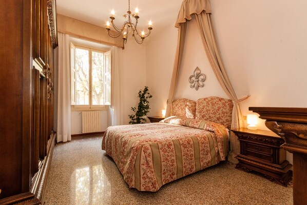 Die Wohnung liegt im ersten Stock eines schönen Gebäudes. Das Haus ist charmant und elegant. Die 2 Schlafzimmer sind sehr gemütlich und sehr viel Liebe zum Detail bezahlt wurde. Die Wohnung verfügt über 2 Schlafzimmer, ein Wohnzimmer mit DVD-Player, Decoder für die internationalen Kanälen und einen LCD-TV, eine unabhängige voll ausgestattete Küche, ein Badezimmer. Im Wohnzimmer gibt es ein Schlafsofa. Im Eingangsbereich der Wohnung gibt es einen Schrank eingerichtet, wo unsere Gäste alle notwendigen Utensilien zum Verkostung italienischer Wein zu finden. Im Schrank finden Sie auch viele Karten und Routen von Florenz und andere nützliche Informationen, um Florenz zu besuchen. Die Wohnung hat zwei Balkone in einer ruhigen Gartenanlage.