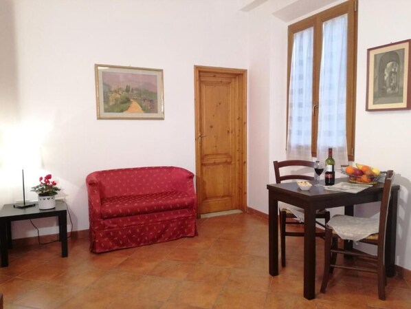Das RICASOLI-Apartment liegt im zweiten Stock (Zugang mit dem Aufzug), ist hell und sehr ruhig, blickt auf den Innenhof und besteht aus einem Doppelzimmer mit französischem Bett, einer voll ausgestatteten Küche (mit Kühlschrank mit Gefrierfach, Mikrowelle, Gasherd, Moka-Kaffeemaschine (Espressomaschine auf Anfrage), Wasserkocher, Toaster, Töpfe, Pfannen und Geschirr, Schrank und Wohnbereich mit kleinem Sofa, Badezimmer mit Dusche, Willkommensset, Haartrockner und Handtuchtrockner. Die Wohnung ist ausgestattet mit LED-TV (digitale terrestrische und Satellitenkanäle in Klartext), Wi-Fi-System (Internetverbindung auch über Kabel), Heizung, Klimaanlage, Telefon und Safe. Um die oberen Etagen zu erreichen, ist in der Struktur eine schöne Treppe aus ruhigem Stein aus der Zeit erhalten geblieben aus den dreißiger Jahren des 20. Jahrhunderts, ausgestattet mit einem originalen gusseisernen Geländersystem und einem wunderschönen Marmorvolant.