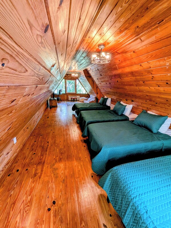 4 Twin beds offers a cozy space perfect for family fun and restful nights.