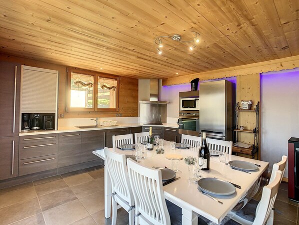 Küche: Großer Kühlschrank mit Gefrierfach, Induktionskochfeld, Backofen, Mikrowelle, Geschirrspüler, elektrische Kaffeemaschine, Senseo-Kaffeemaschine, Wasserkocher, Toaster, Küchenmaschine…