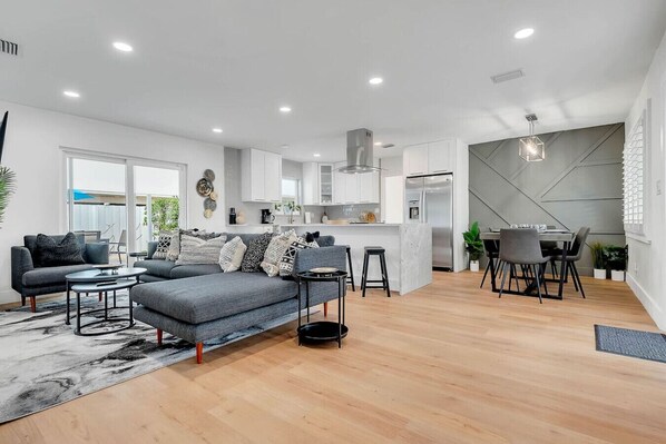 Experience modern comfort in this fully renovated 3BR/2BA pool home with a fully stocked kitchen, stainless steel appliances, new glass walk-in showers, and stylish furnishings. Relax in the fenced, shaded backyard with ample seating, enjoy Florida’s weather, or take a 5-min drive to the beach. Whole Foods is under a mile away. Optional services: grocery delivery, boat rentals, in-home massages, cribs, and more. Reserve your ideal family getaway today!