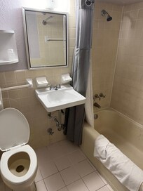The hotel was probably super cute back in the 1960's when it first opened and then.....they decided to never update anything. Bathroom was dingy/ bathtub was stained and cracked, toilet looked like it came from a gas station. You had to slam your body into the bathroom door to get it to close. Rug in the bedroom was probably decades old. Beds were very lumpy and uncomfortable to boot. It was a cold night so we attempted to turn the heater on and it started smelling like burning...something. So we were too afraid to use it. To add insult to injury our room was right next to the door that leads to the parking lot which was also very heavy and old so anytime anyone came in or out, we were treated to a loud slamming noise that kept us up at night. Only redeeming quality was the location on the beach.
