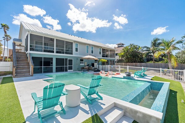 Experience the resilience of our FMB community! Our home, nestled at the end of the street least impacted by hurricane Ian, stands strong. Along with remodeling all bathrooms we've rebuilt the entry stairs and private fishing dock, offering you the best of island living.