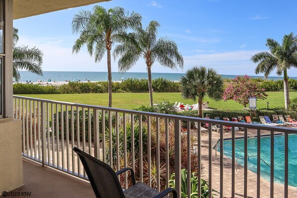 Nice location-view overlooking pool and beach. Condo clean, but needs updating. Furniture uncomfortable and bathtub slip hazard.
