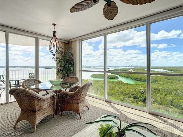Comfortable, spacious and tranquil getaway. Enjoy the immaculate views of the gulf from the balcony and inside from the floor to ceiling windows. Fantastic location on the water where you can walk to the beach or spend time at Lovers Key state park. See lots of wildlife and enjoy the onsite restaurant and bar, Flippers next to the pool with a waterfall and hot tub. All the action and tourist attractions you could want is just a 13 minute drive up the street to Fort Myers Beach, pier and the new Margaritaville!