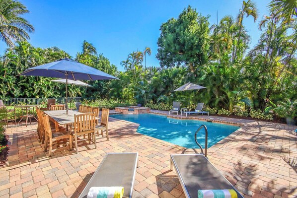 Die Zimmer sind groß und hell und einige bieten einen schönen Blick auf die Bucht oder den Golf von Mexiko. Das Haus verfügt über einen beheizten Pool mit Wasserfall aus dem eingebauten Whirlpool - alle umgeben von einer schönen Sonnenterrasse und privat mit dichter tropischer Landschaft.