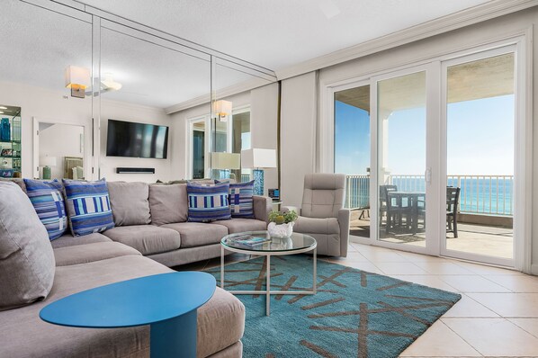 Unit 405 ist eine Eigentumswohnung mit 3 Schlafzimmern und 3 Bädern und einer maximalen Belegung von 8 Personen. Das Hauptschlafzimmer verfügt über ein Kingsize-Bett. Das zweite Schlafzimmer hat ein Queen-Size-Bett, das dritte Schlafzimmer hat ein Queen-Size-Bett und das Bonus-Zimmer hat ein Queen-Schlafsofa. Die Unterkunft verfügt über eine voll ausgestattete Küche und ein Wohnzimmer. Es gibt 5 Fernseher, darunter ein Apple TV und Zugang zu Netflix. Es gibt auch eine Waschmaschine / Trockner in der Einheit und WLAN ist in dieser Einheit zur Verfügung gestellt.