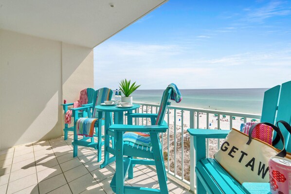Chic beach vacation condo with a Gulf front balcony plus seasonal BEACH SERVICE included!