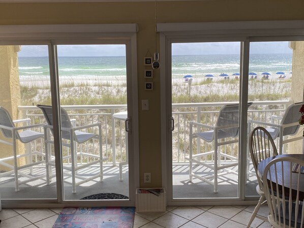 Direkt am Strand mit fantastischem Panoramablick unserer schönen weißen Sandstrand und smaragdgrünen Wasser des Golfs von Mexiko. Genießen Sie die schönsten Sonnenauf- und Untergänge von Ihrem privaten Balkon. Sie können sogar das Feuerwerk von Destin Uhr aus dem Balkon ..... ohne die Massen zu kämpfen !!