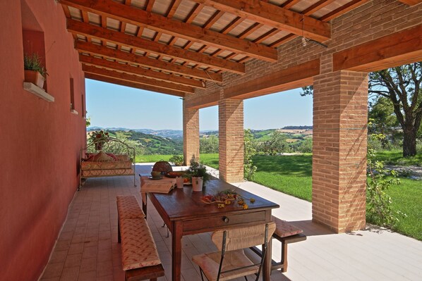 Villa del Cucco ist ein gemütliches und sorgfältiges renoviertes Landhaus in den Hügeln der Val Metauro in der Nähe von Fossombrone, in der Provinz von Pesaro-Urbino, in den Marken. Diese Villa befindet sich in einer Panoramalage mit einem herrlichen Blick auf das Tal mit Hügeln, die von Olivenhainen, Weinbergen und Weizenfeldern bedeckt sind.