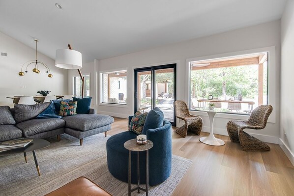 Eight adults (4 couples) enjoyed several nights at this incredible, California-vibed Vrbo. We all had our own bedrooms and bathrooms, with multiple spaces inside and out to gather, play games, enjoy the water features, pool, and spa, and it couldn’t have gone any better. All 4 cars fit easily on the driveway, and the night-lighting in the backyard makes it a great place to hang out around the pool, spa, and outdoor TV. We loved everything! Quiet, well established neighborhood and just a couple miles away from Main St., Fredericksburg. We would totally stay here again! Impeccable communication with host, and lovely amenities throughout.