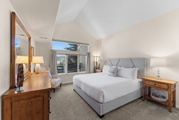 Primary Bedroom: King bed, premium linens, and private en-suite bathroom.