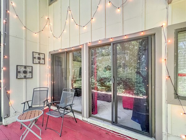 This cute condo is conveniently located right across from the complex pool! Upon entering the home, guests will see a downstairs bedroom and bathroom. Our kitchen is fully equipped with everything needed to whip up a yummy meal. We have recently purchased new living room sofas that house a full-sized bed for those with larger groups. Upstairs are two more bedrooms and a bathroom where guests can sprawl out and get cozy! Please enjoy our back porch and listen to the sounds of nature as you kick back with a good book. Lastly, our washer and dryer are open to guests and are located off the back porch. The key is on the fridge.