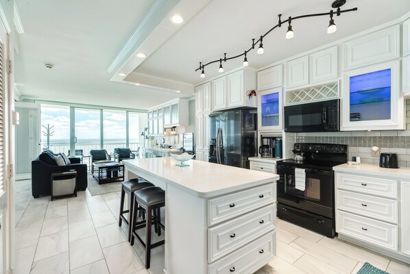Situated on the east end of the island, our beachfront condominium is near the intersection of the seawall and the main entrance to the island. Enjoy easy access to the Seawall and historical district’s parks, shopping, museums, trendy cafes, and cultural hotspots, making your stay as comfortable and customizable as you desire. There are no meters or other hassles of street parking here as parking is in a designated lot on the north side of the building, with other overflow parking available if needed. The open-concept living room is flooded with natural light, creating a warm and welcoming atmosphere. With the relaxing view of the beach, it's the perfect space to unwind! Leave your cares, pool towels, and other amenities behind. Our kitchen comes fully stocked with dishes and appliances. Each bedroom has its own bathroom for added privacy. A generous amount of pool towels are provided and can be exchanged at the front desk as often as needed to enjoy the on-site heated pool and hot tub. This unit specifically is equipped with a stackable washer and dryer, so no need to take a trip to the laundromat. Other onsite amenities for your enjoyment include tennis and pickle ball courts, shuffleboard, horseshoes, picnic grills, and hammocks. Our management team is committed to ensuring your living experience is smooth, enjoyable, and sure to produce fond memories. Prompt response to maintenance requests and a friendly approach make us stand out.
