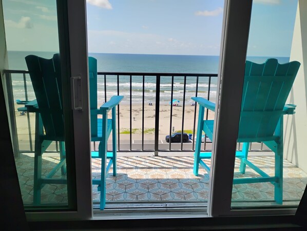 Charming 1-bedroom / condo with beach view in welcoming Galveston with WiFi, AC.