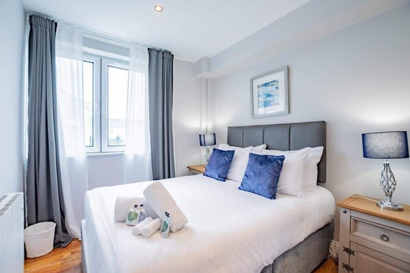 Unser Platz ist eine von VIER Wohnungen im selben Gebäude, Seite an Seite. Wenn Sie also mehr als sechs Gäste in Ihrer Gruppe haben, kontaktieren Sie uns bitte. Die Wohnung ist eine Maisonette auf zwei Etagen aufgeteilt. Vom Straßeneingang führt eine Treppe in den Innenhof und eine Treppe in die Wohnung. Beim Betreten steigen Sie eine Treppe hinauf und betreten das Wohnzimmer, das zum Küchen- und Essbereich offen ist. Entspannen Sie sich auf den stilvollen Möbeln oder am Fensterplatz und genießen Sie den Blick über den Hafen von Galway. Sie können sogar einen Blick auf die Aran-Inseln werfen. Neben dem Wohnbereich befindet sich ein Flachbildfernseher mit einer Esstischbank mit fünf Hockern. Perfekt für Ihren Laptop oder Ipad, da USB-Anschlüsse zum Aufladen Ihrer Geräte eingebaut sind. Die moderne Küche ist in einem blauen Hochglanz mit Betonoberflächen, allen wichtigen Geräten, Geschirr und Kochgeschirr ausgestattet. Auf dieser Etage befindet sich das erste Schlafzimmer mit Doppelbett und Einbauschränken. Im zweiten Stock gibt es ein Hauptbadezimmer mit begehbarer Dusche, das in modernem Stil und mit Accessoires ausgestattet ist. Zwei weitere Schlafzimmer befinden sich auf dieser Etage, darunter das Hauptschlafzimmer mit eigenem Bad mit ebenerdiger Dusche und Blick auf das Wasser. BED CONFIGURATION1ST FLOOR: Schlafzimmer 1: 1 Double2nd FLOOR: Schlafzimmer 2: 1 Double 1 SingleBedroom 3: 1 King (5x6) mit eigenem Bad (Master-Schlafzimmer) Der Hafen von Galway City ist ein perfekter Ausgangspunkt, um Galway zu erkunden. Die Wohnung ist weniger als 3 Minuten zu Fuß zu allen Kneipen, Restaurants, Cafés und Geschäften. Sie könnten nicht an einem besseren Ort sein, alles ist vor Ihrer Haustür!Wenn Sie Touren buchen möchten, kontaktieren Sie uns bitte und wir können Ihnen die besten Vorschläge für Reiserouten unterbreiten. WICHTIG: Bei großen Fahrzeugen beträgt die Durchfahrtshöhe zum Parken 2 Meter.