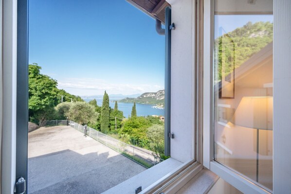 Von seiner Lage im Hauptgebäude aus können die Gäste einen panoramischen Blick auf den Gardasee und das umliegende Grün genießen, perfekt, um Momente der Ruhe im Freien zu genießen.
