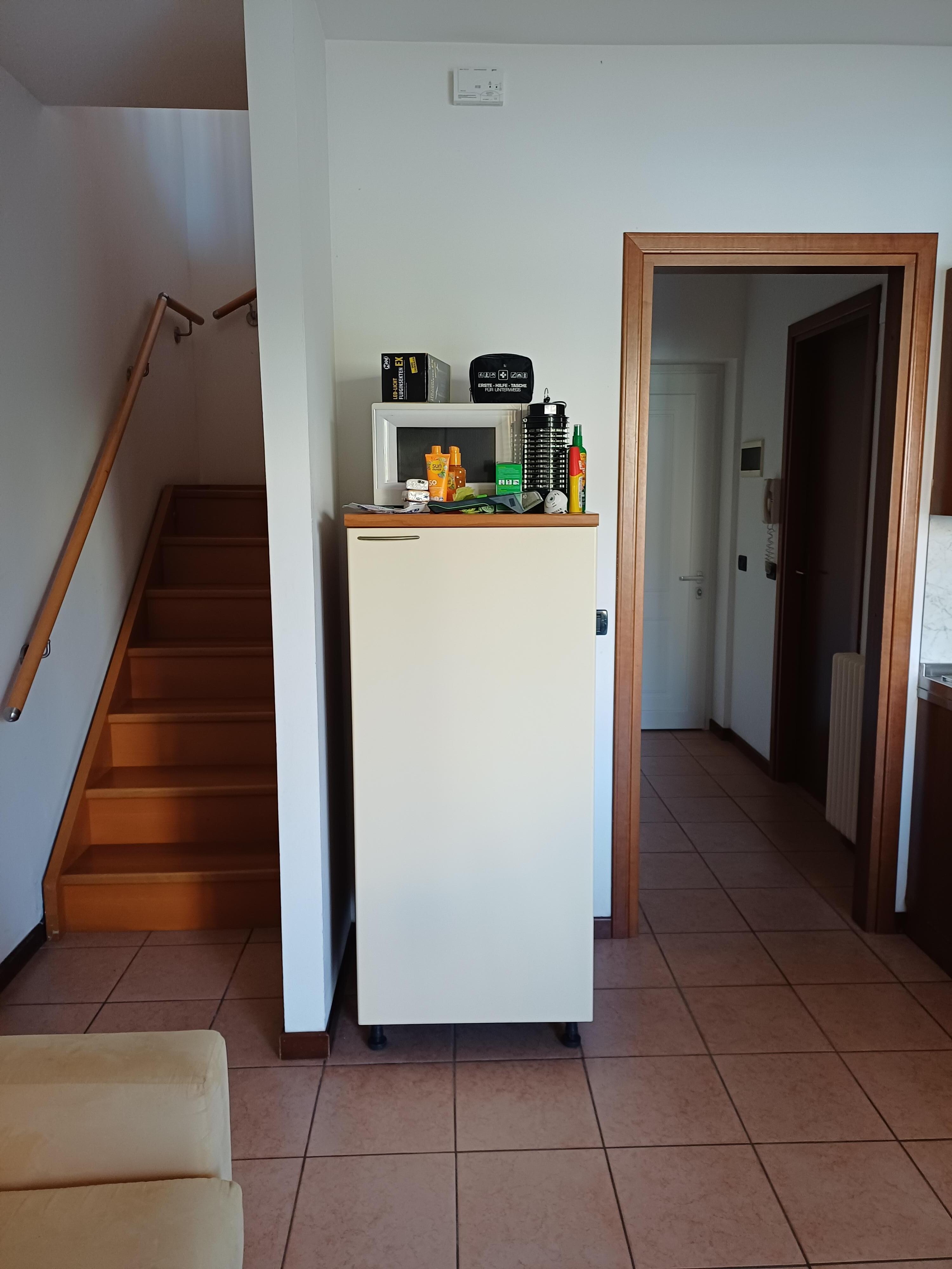 3-Zimmer-Wohnung 65 m2 auf 2 Stockwerken. Komfortabel eingerichtet: Wohn-/Schlafzimmer mit 1 Doppeldiwanbett, Esstisch und Sat-TV. Ausgang zur Terrasse, zum Schwimmbad. Offene Küche (Gasherd, 4 Flammen, Toaster, Mikrowelle, elektrische Kaffeemaschine). Sep. WC. Obergeschoss: 1 Doppelzimmer mit Klimaanlage. Ausgang zum Balkon. 1 Zimmer mit 2 Betten und Klimaanlage. Dusche/Bidet/WC. G-Heizung, Klimaanlage (extra). Balkon, Terrasse überdacht. Terrassenmöbel, Abstellkammer. Sicht auf das Schwimmbad und den Garten. Zur Verfügung: Safe. Internet (WLAN, gratis). Parkplatz (1 Auto). Bitte beachten: Nichtraucher-Unterkunft. Eigener Eingang. IT023036B4NWSUJ3XS